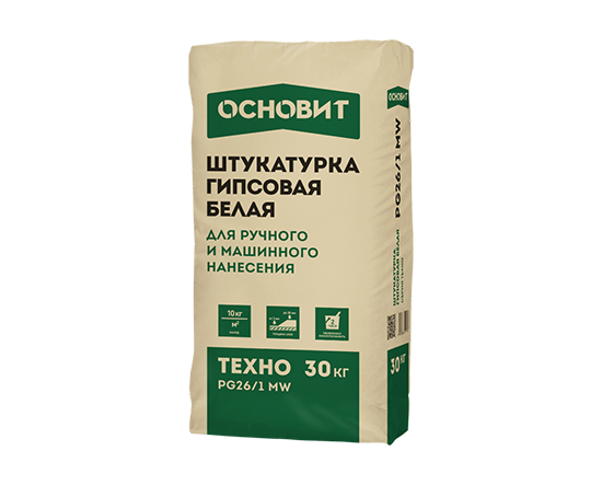 Гипсовая штукатурка ОСНОВИТ ТЕХНО PG26/1 M предназначена для выравнивания стен и потолков в помещениях с нормальной влажностью под оклеивание обоями, окрашивание.